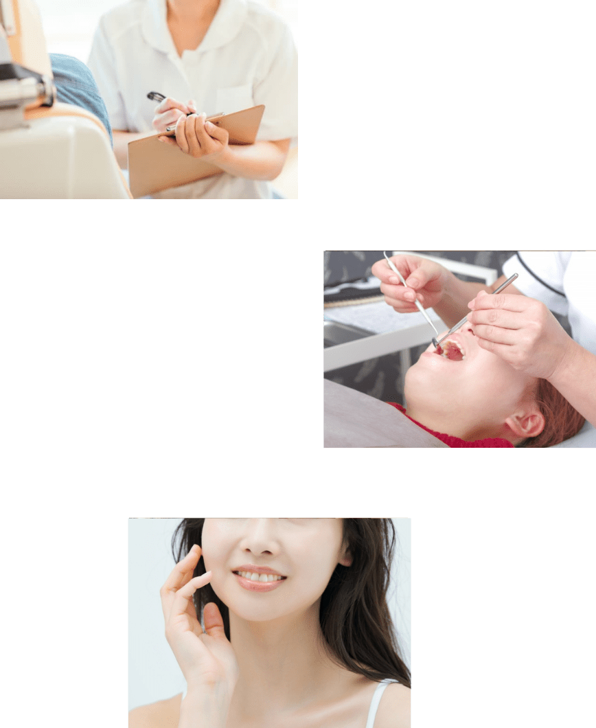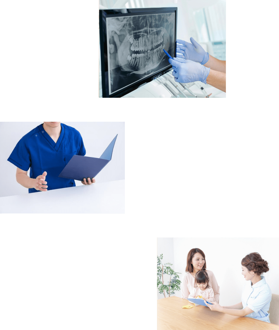 まずは今のお困りごとや、「もっとこうしたい」というご要望を詳しく伺います。お口の状態を把握するための診査も行います。