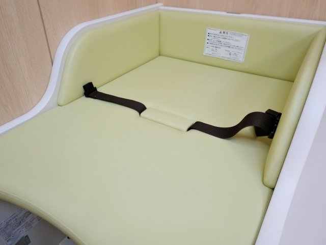 トイレ内に、おむつ交換台があります。比較的ゆとりのある広々とした設計ですので、周囲を気にせずスムーズに身支度を整えていただけます。