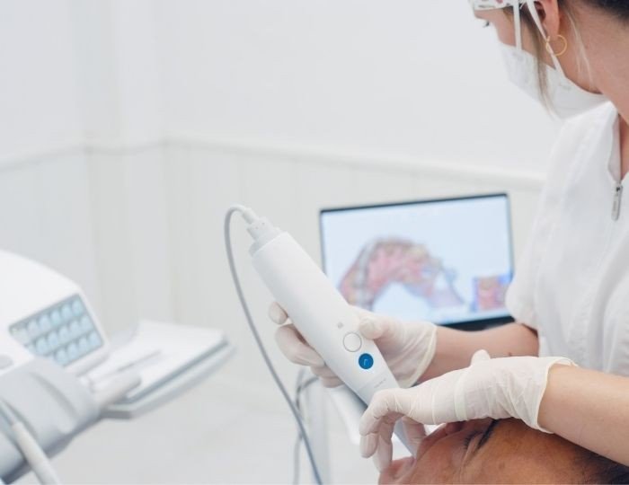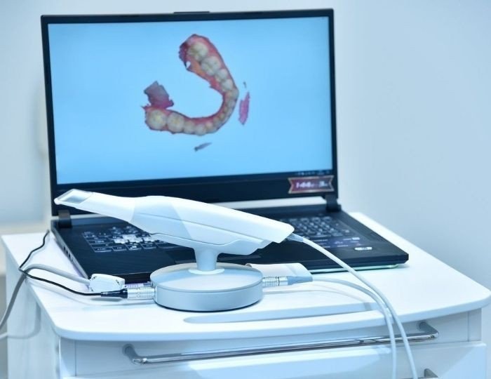 お口の中をスキャンするだけで精密な歯型を採ることができ、従来の型取りのような不快感がありません。
